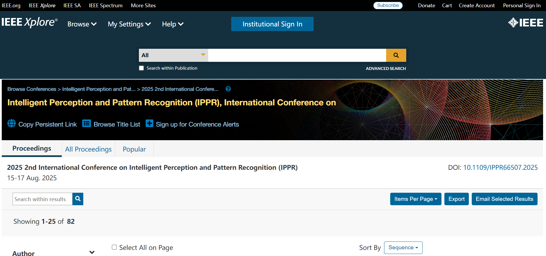 IPPR 2025 Cover丨EI Compendex丨Scopus丨IEEE Xplore