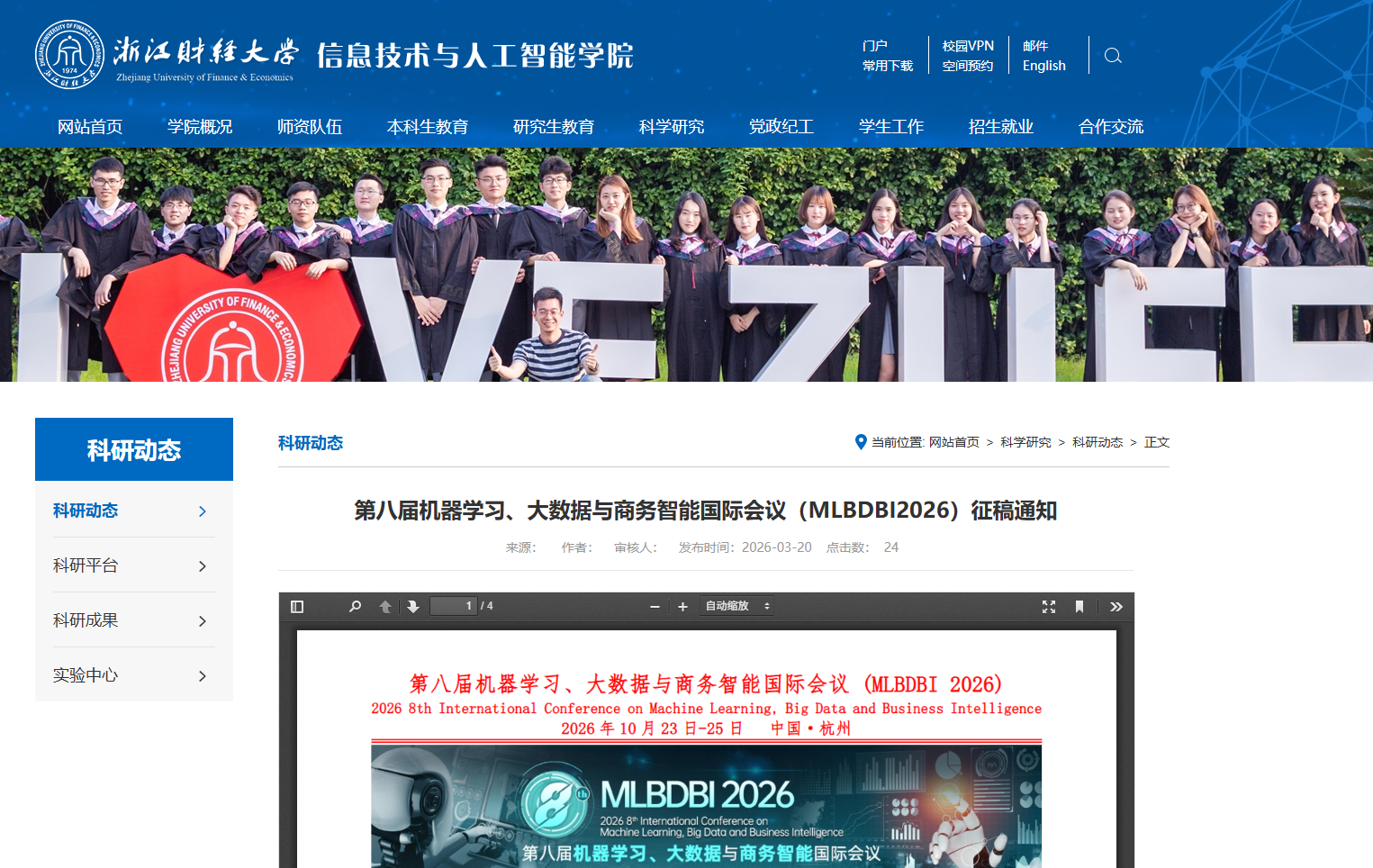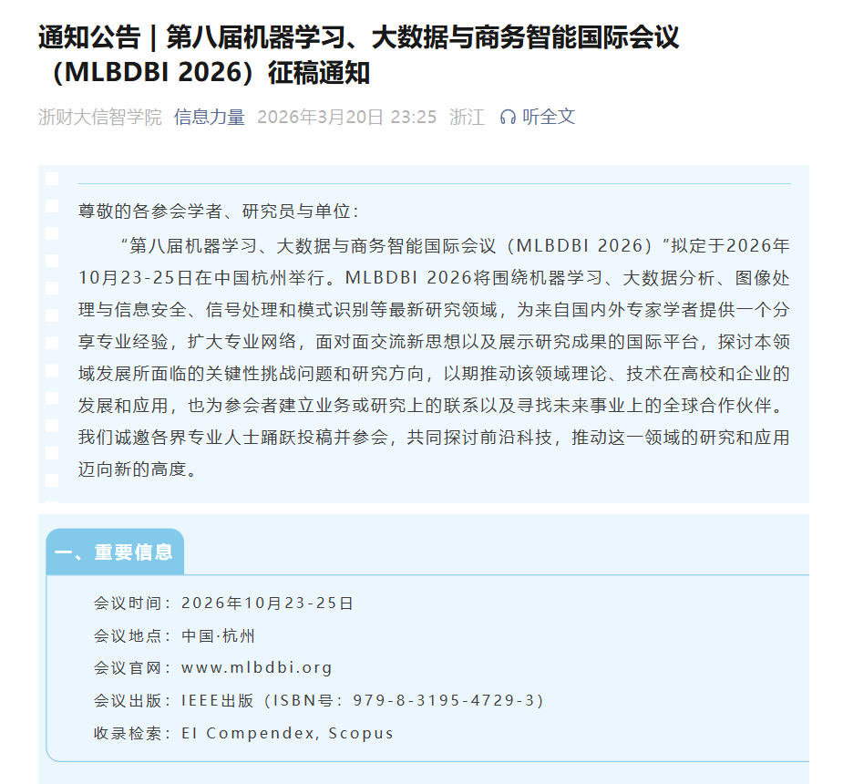 | 上线通知:MLBDBI 2026会议已上线浙江财经大学科研处公众号,浙江财经大学信息技术与人工智能学院官网、公众号(点击图片查看) |