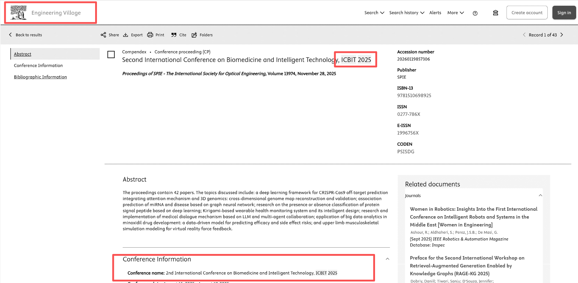 | SPIE出版:ICBIT 2025(2025.8.15-17)于会后5个月检索——2025/9/3递交出版,2025/12/1见刊,2026/1/19检索。 |