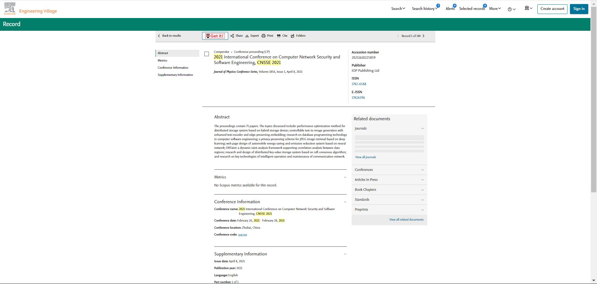 Screenshots of EI Indexing