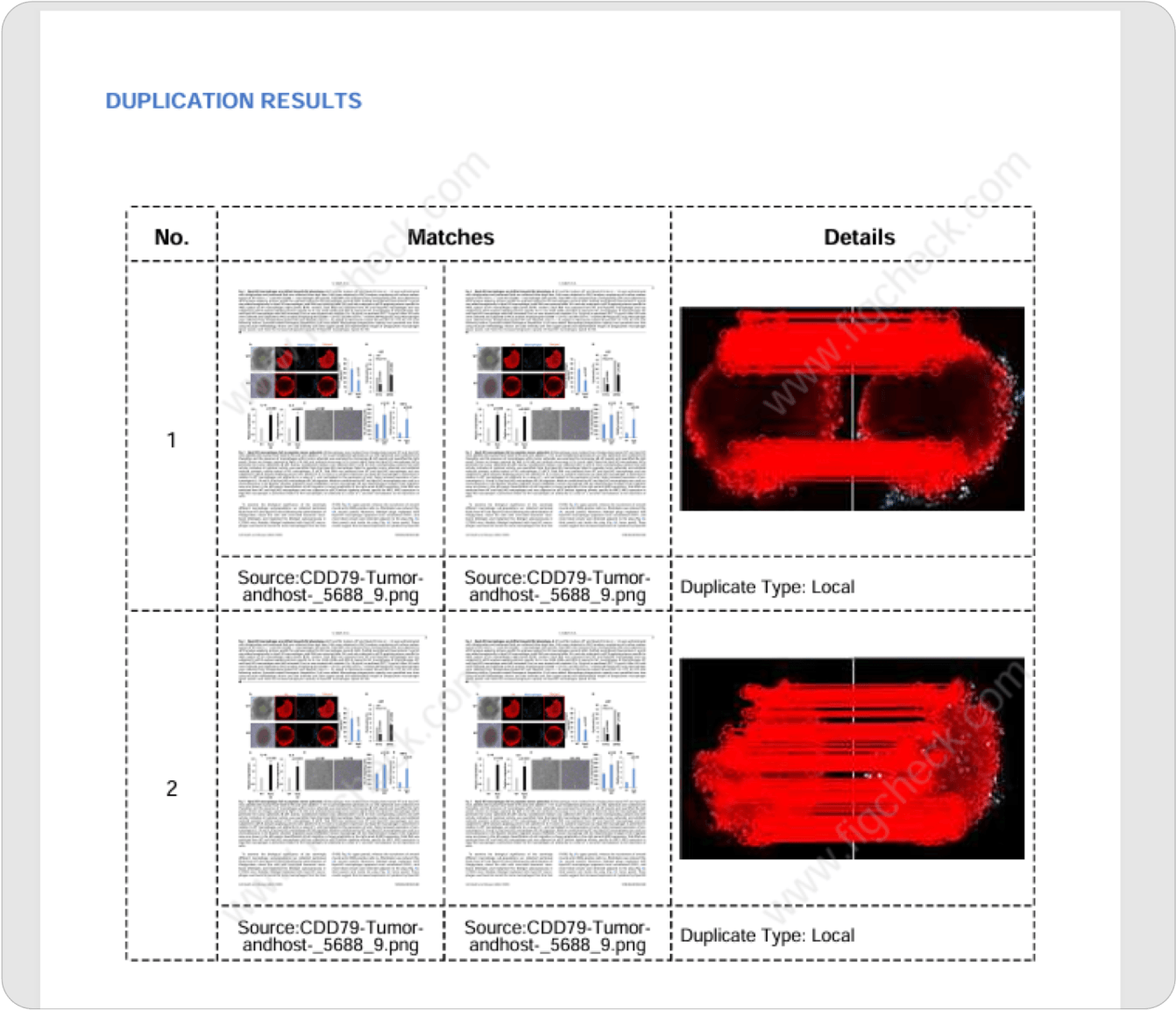 经过前期5000+次测试结果表明,Figcheck可以发现98%以上的重复图片。